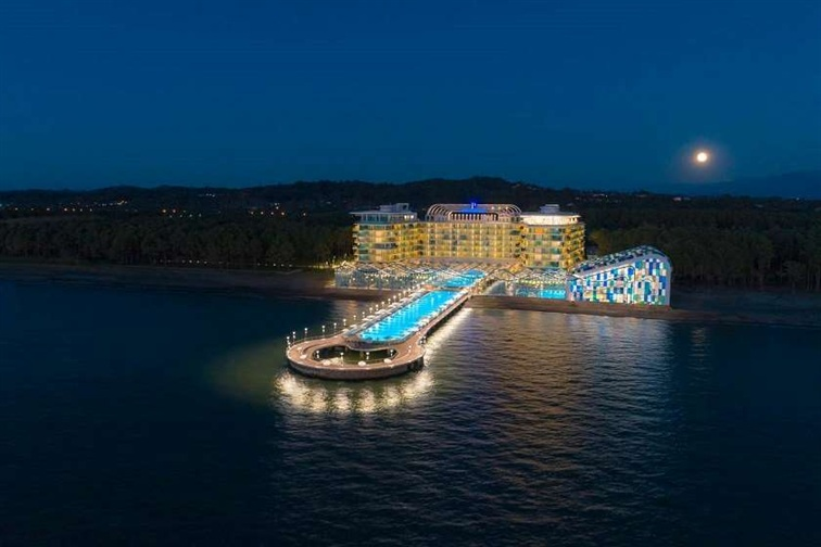 აღნიშნული პროექტი ერთ-ერთი უმნიშვნელოვანესი იყო ჩვენი კომპანიისთვის, როგორც გამოცდილების კუთხით, ასევე საკითხის ტექნიკურად მართებულად გადაჭრის მხრივ. ობიექტი მდებარეობს უშუალოდ ზღვასთან ძალიან ახლოს, ზოგიერთ სანათებს (ზღვაში შემავალი აუზი) ზღვის ტალღებიც კი ეხება, მიუხედავად ამისა, ჩვენ მიერ გაცემულ იქნა საკმაოდ დიდი ხარისხის საგარანტიო ვადები, რაც გულისხმობს 5-ს, ზოგ შემთხვევაში 7 წელსაც კი. ამის საშუალებას გვაძლევდა ჩვენი მომწოდებლების ნაწარმის უმაღლესი ხარისხი და ნდობა მწარმოებლის, რომელიც მუდამ ჩვენს გვერდში დგას.